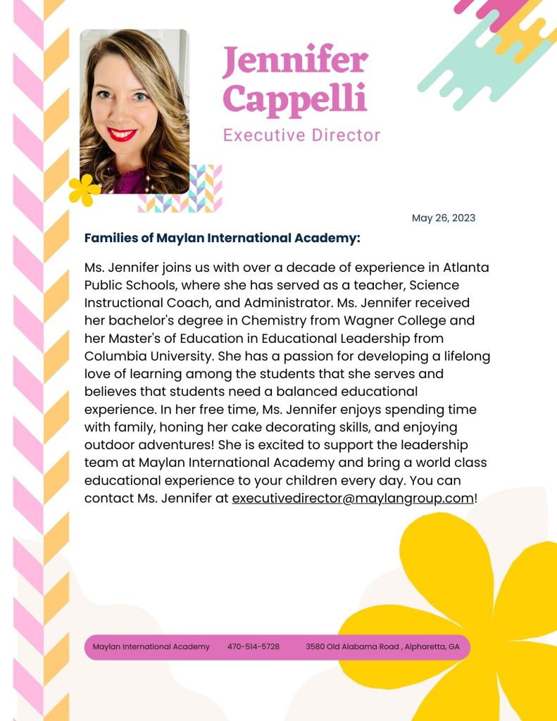 Ms. Karen holds a bachelor’s degree in social work from the University of North Georgia and has completed her MTEI Montessori training for ages birth through 3 years old. Her qualifications provide her with valuable skills and insights into working with young children.